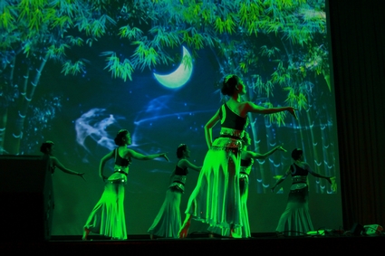 晚会的下半场更是精彩纷呈,惊喜不断。一曲“共和国之恋”表达了EMBA同学们对祖国大好河山的依恋与热爱;舞蹈“月光下的凤尾竹”以优美的舞姿、美轮美奂的背景向我们展现了清新、纯粹的古典文艺风;小品“道口故事会”以幽默诙谐的方式再现了五道口人日常生活中的欢声笑语和风趣轶事;歌曲串烧“爱在道口”表达了10级硕士生们即将离开母校的依依不舍和难忘情怀;EMBA学员的歌曲联唱“百年清华中国梦”表达了这些社会精英对清华新百年的期待、对祖国的祝福和对中国梦的不懈追求。
