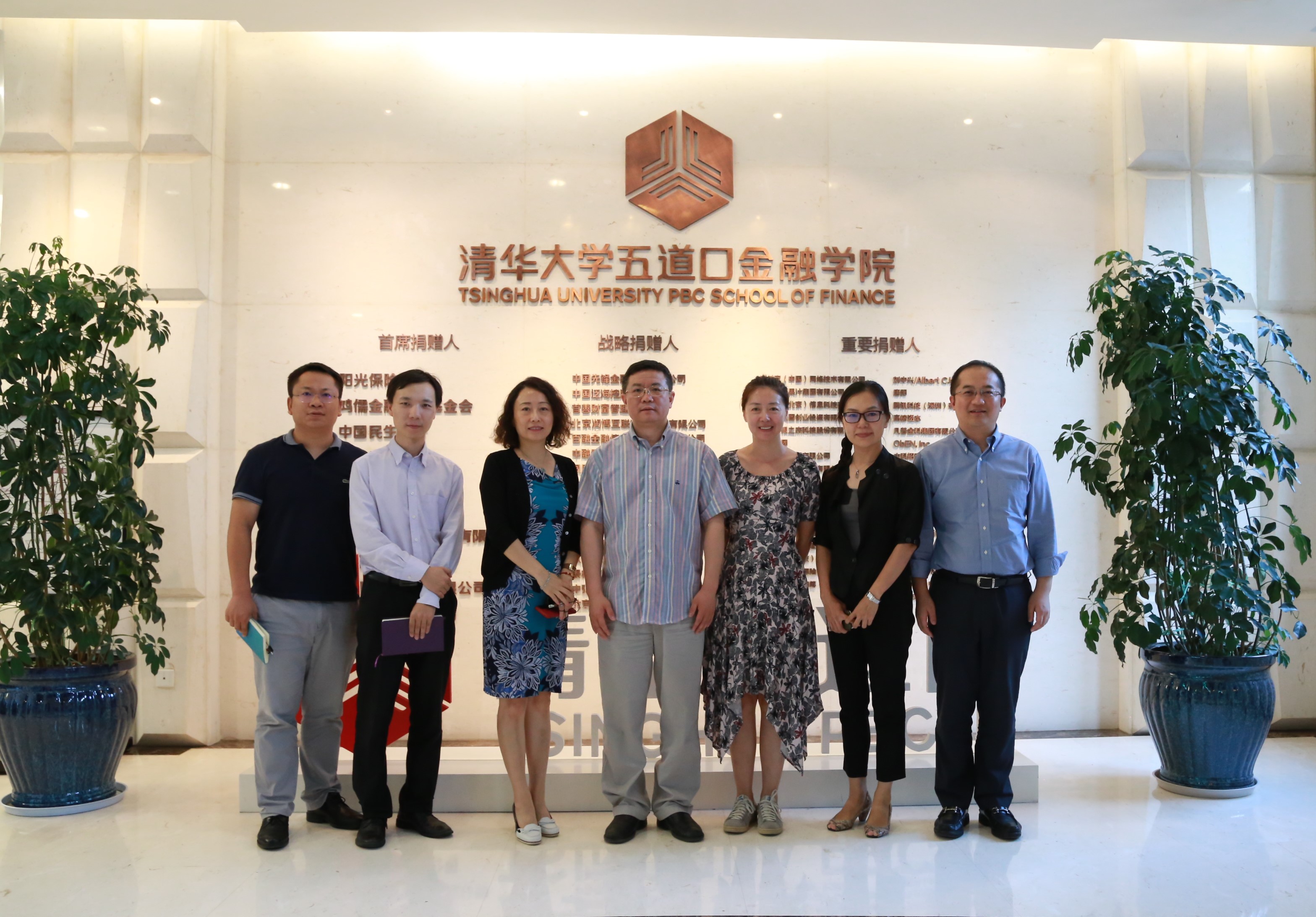 det365官方网站登录教育基金会秘书长袁桅(左三)一行与学院常务副院长廖理(中间)及学院工作人员合影