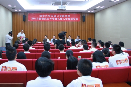 2011级学生王森、新生方昶分别作为老生和新生代表进行了发言。王森通过自己在道口一年多的学习和生活经历,从学术研究、身体锻炼、团结同学、加强交流几个方面向新生提出建议,并祝福大家在金融学院度过美好而难忘的时光。新生代表方昶在发言中说,考上道口,是梦想的完成,更是新梦想的开始。清华传统与道口精神融和,为他们提供了一个更好的平台。他表示,自己要从一点一滴做起,承前启后,刻苦钻研,开拓视野,立足中国,走向世界。