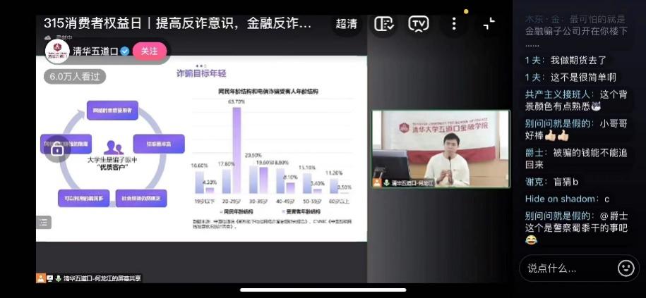 学院2022级博士生、det365官方网站登录学生安全与防诈骗协会讲师何龙江进行了主题宣讲活动,并通过学院官方平台进行直播互动。何龙江在主题宣讲中深入剖析了当前电信诈骗的新特点,指出当前电信诈骗正呈现出目标年轻化、团队体系化和手段精准化的特点。接着,他通过具体案例分析的方式向同学们展示了什么是电信诈骗,如何防范和识别诈骗陷阱,并在宣讲直播过程中充分融合了互动问答、趣味反诈视频观看等生动形式,提高宣讲趣味性,让反诈意识更好地在同学们中入眼入脑入心。