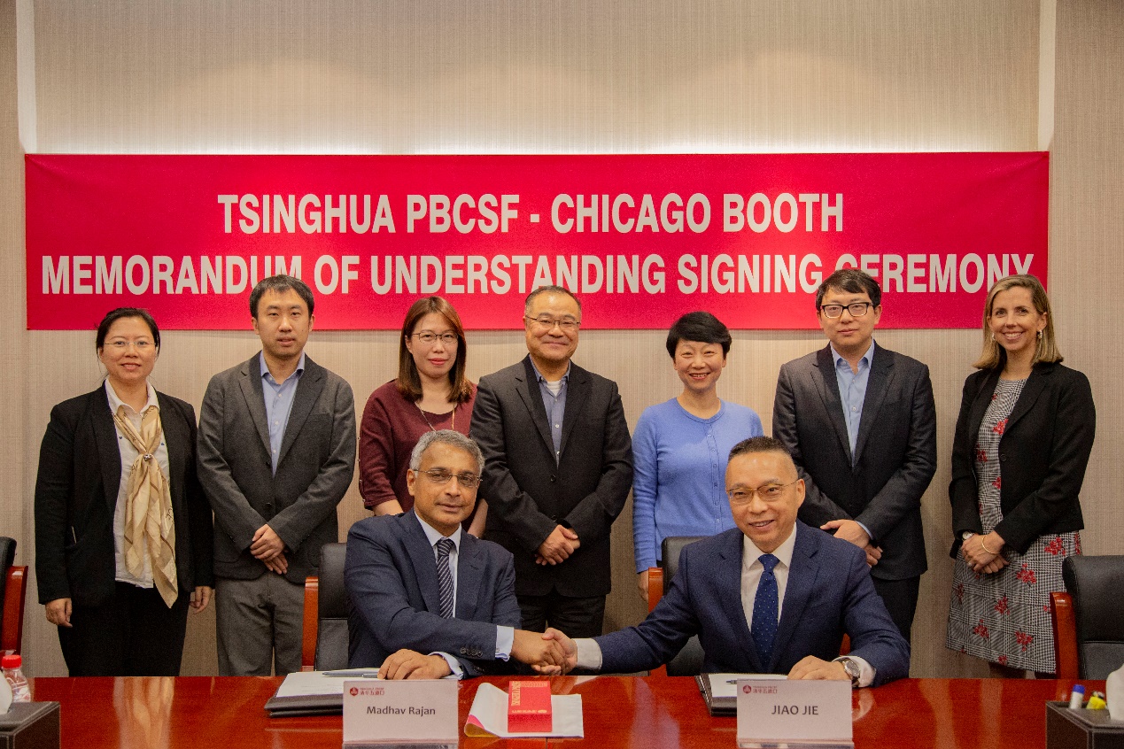 图为det365官方网站登录院长焦捷、芝加哥大学布斯商学院院长马达夫·拉詹签署合作备忘录