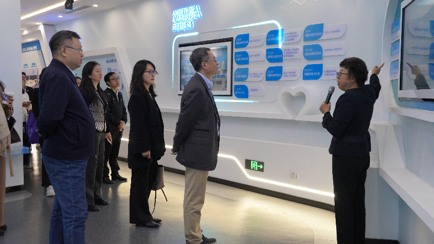 随后,代表团参访了苑东生物制药股份有限公司。在企业负责人的带领下,一行人参观了公司研发中心和生产线,了解了药物研发的流程、实验室管理以及公司在技术创新上的最新进展,对药品的生产工艺、质量控制体系以及智能制造等方面有了直观的认识。通过负责人的讲解,也让大家更深刻地感受到了生物制药行业的前景和挑战,提供了金融行业之外的新视角。